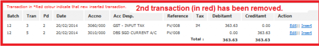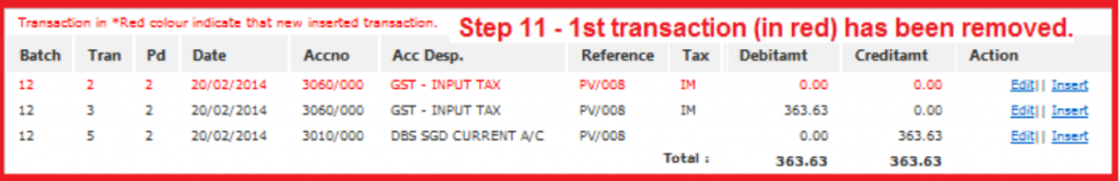 Repeat Step 6 to Step 10 to remove the 2nd Transaction (in red).