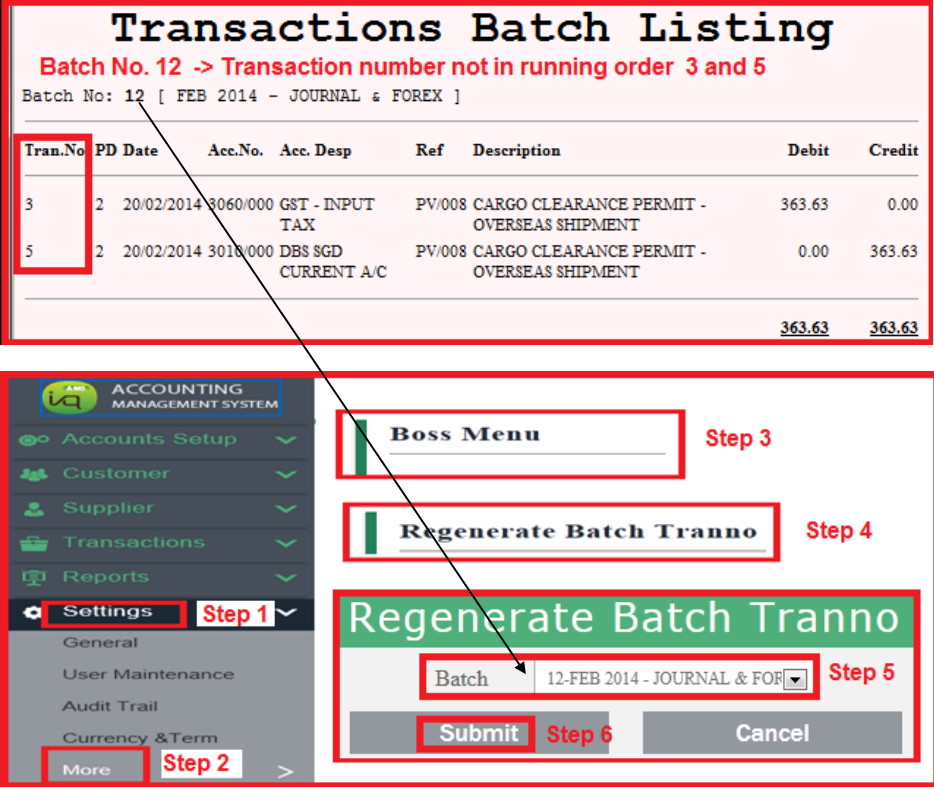 3) To regenerate Batch Transaction Numbers which are not in running order