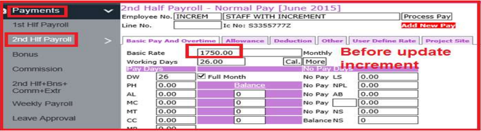 5) Update Basic Rate from Master