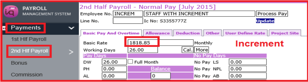 1) Staff – June salary $1750 > Increment $68.85 on 1/7/2015