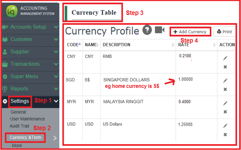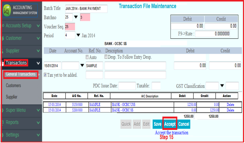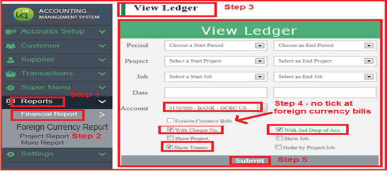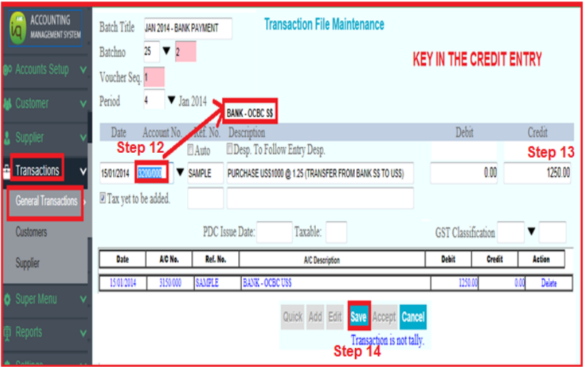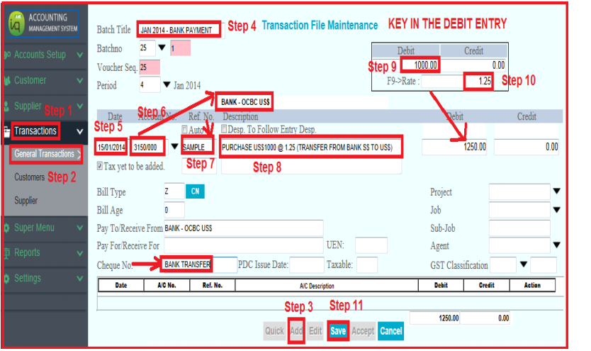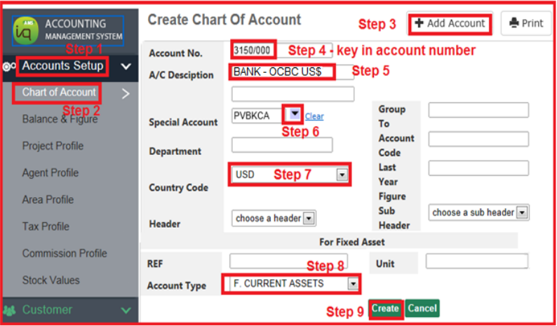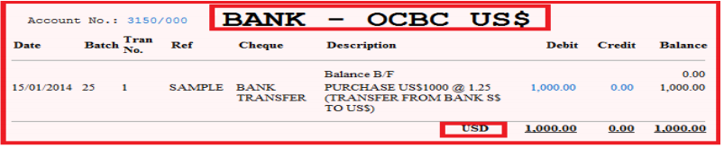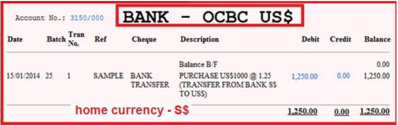 2) To create a Foreign Currency Ledger Account eg Bank – OCBC US$.