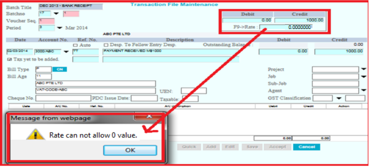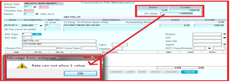 At New Transactions Main, the exchange rate table will appear for foreign currency account. This is a control feature to block out wrong local currency transaction.