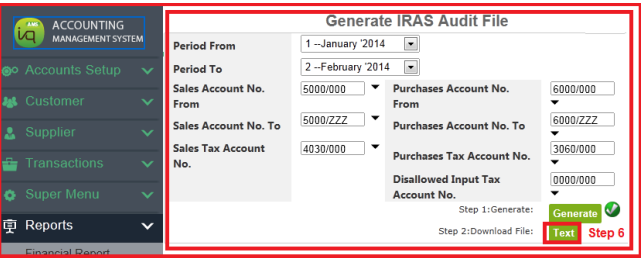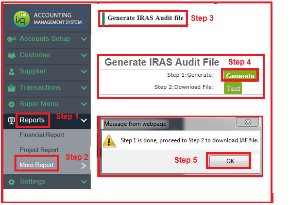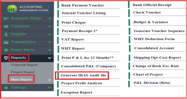 1) To generate IRAS Audit File
