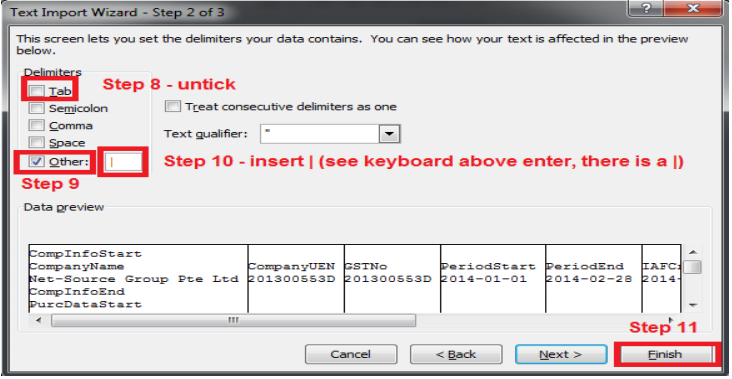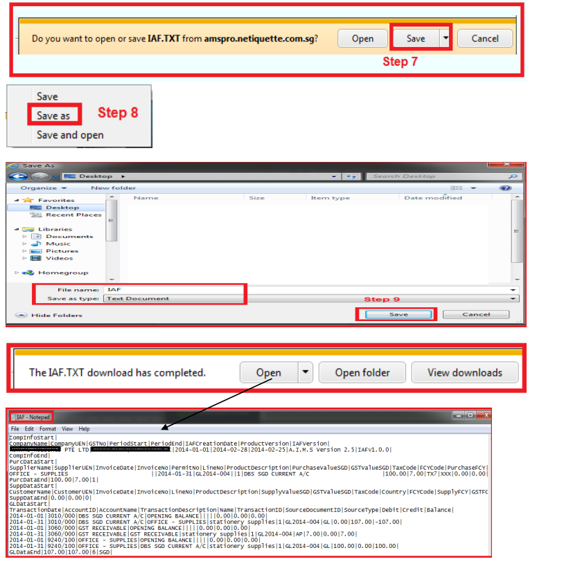 2) To export IRAS Audit File (notepad format) to excel
