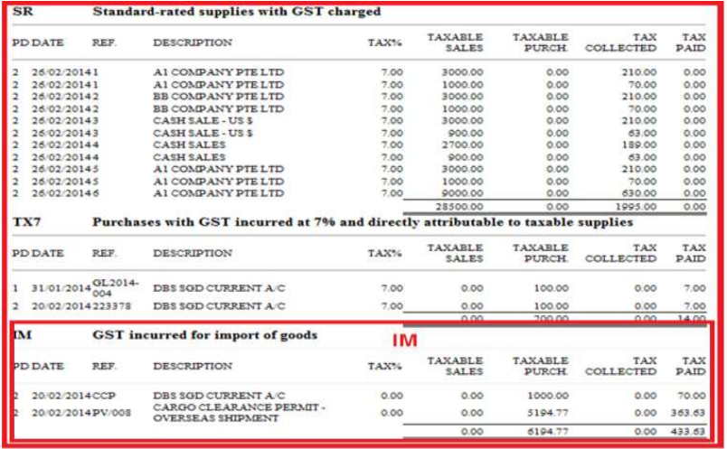 eg taxable purchase immediately followed by IM (purchase tax code) for input tax.