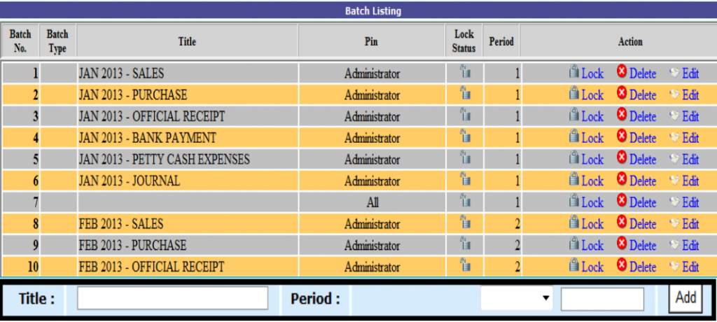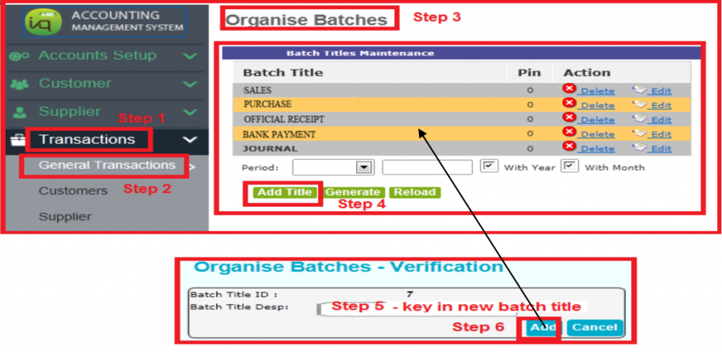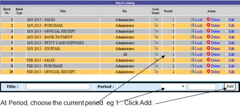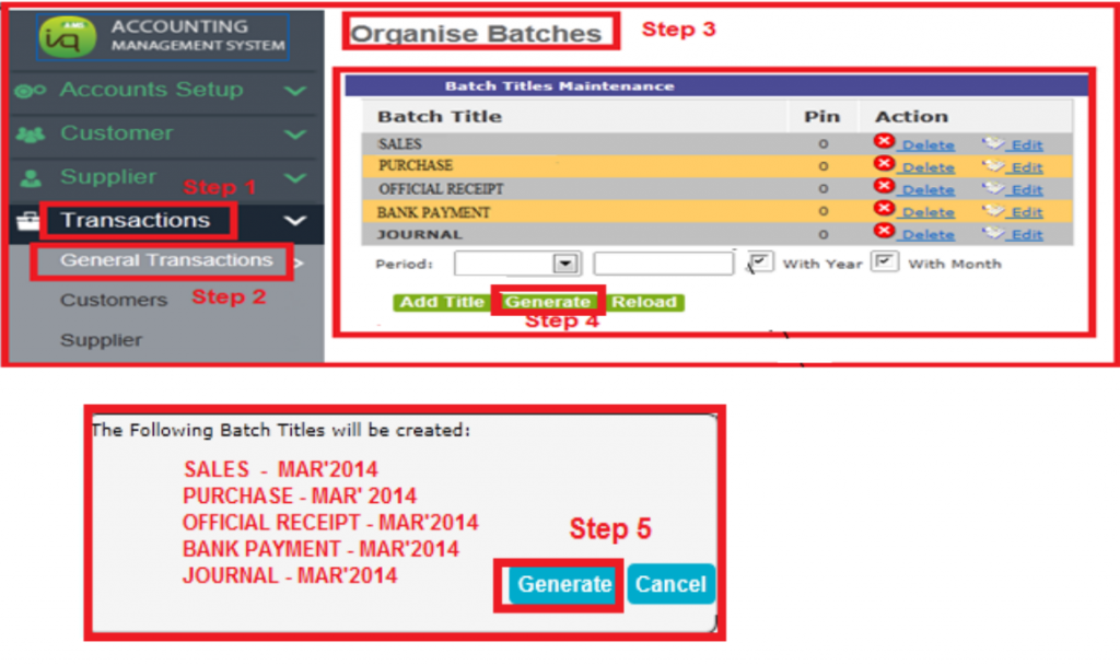 At Batch Titles Maintenance (pre-set template), the user can generate the monthly batches by choosing the period and click Generate.
