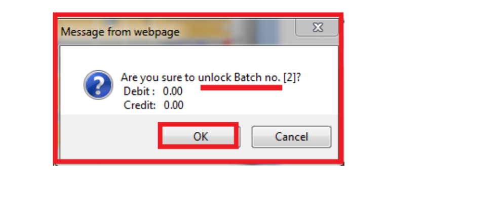At Batch Listing, move cursor to the right end. Select Batch no. and click Delete
