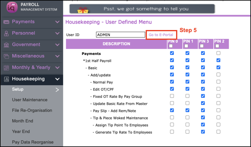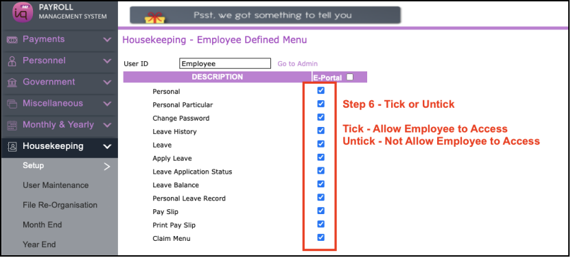 1.) Setup Employee Defined Menu for E Portal