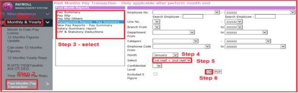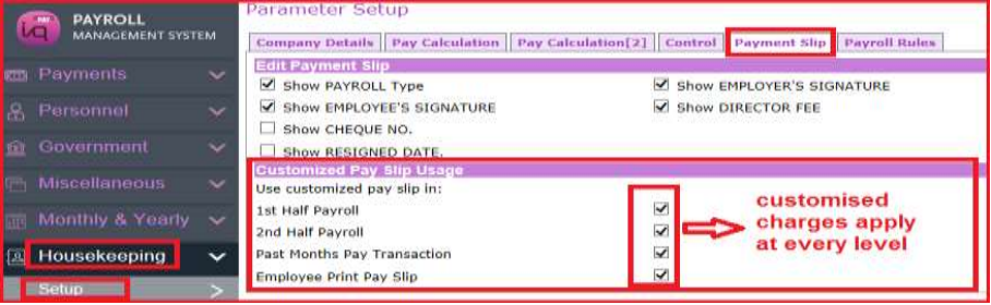 Payroll in-charge can save a softcopy of customised payslip separately beforemonth end process or print out hardcopy for future reference.